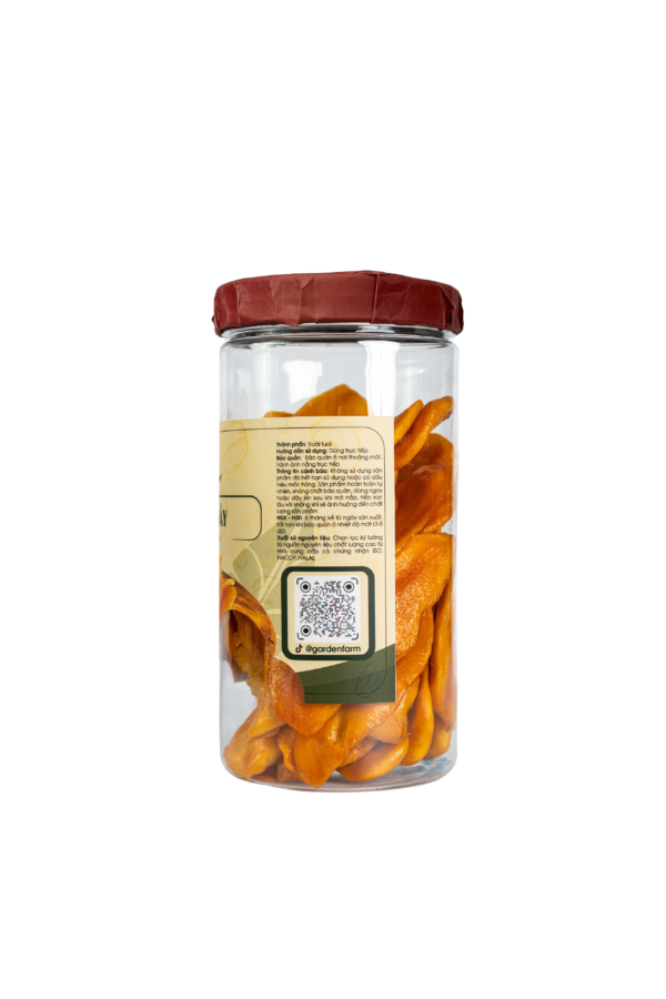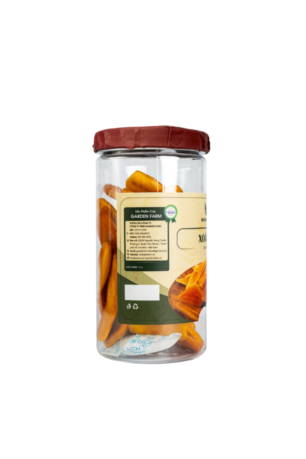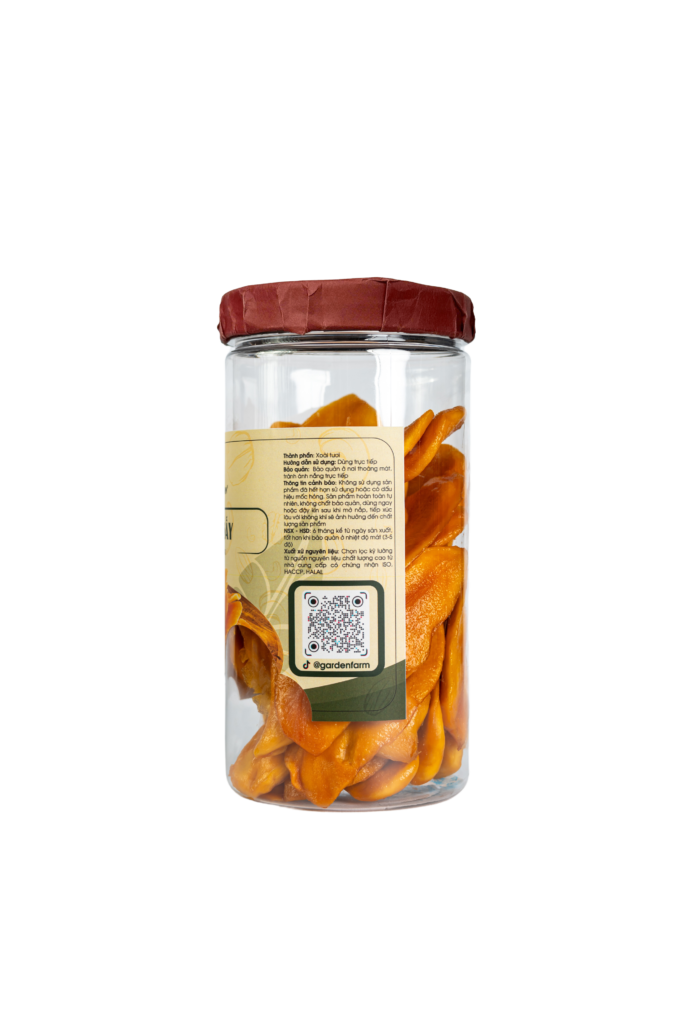 Xoài sấy GARDEN FARM là một loại thực phẩm được chế biến từ xoài tươi, qua quá trình sấy khô. Quá trình này giúp loại bỏ hầu hết hàm lượng nước trong xoài, tạo ra một sản phẩm có thể bảo quản được lâu hơn mà vẫn giữ được hương vị đặc trưng của xoài. Xoài sấy thường có màu vàng hoặc vàng nâu, với kết cấu dẻo và hương vị ngọt ngào, đôi khi có vị chua nhẹ.